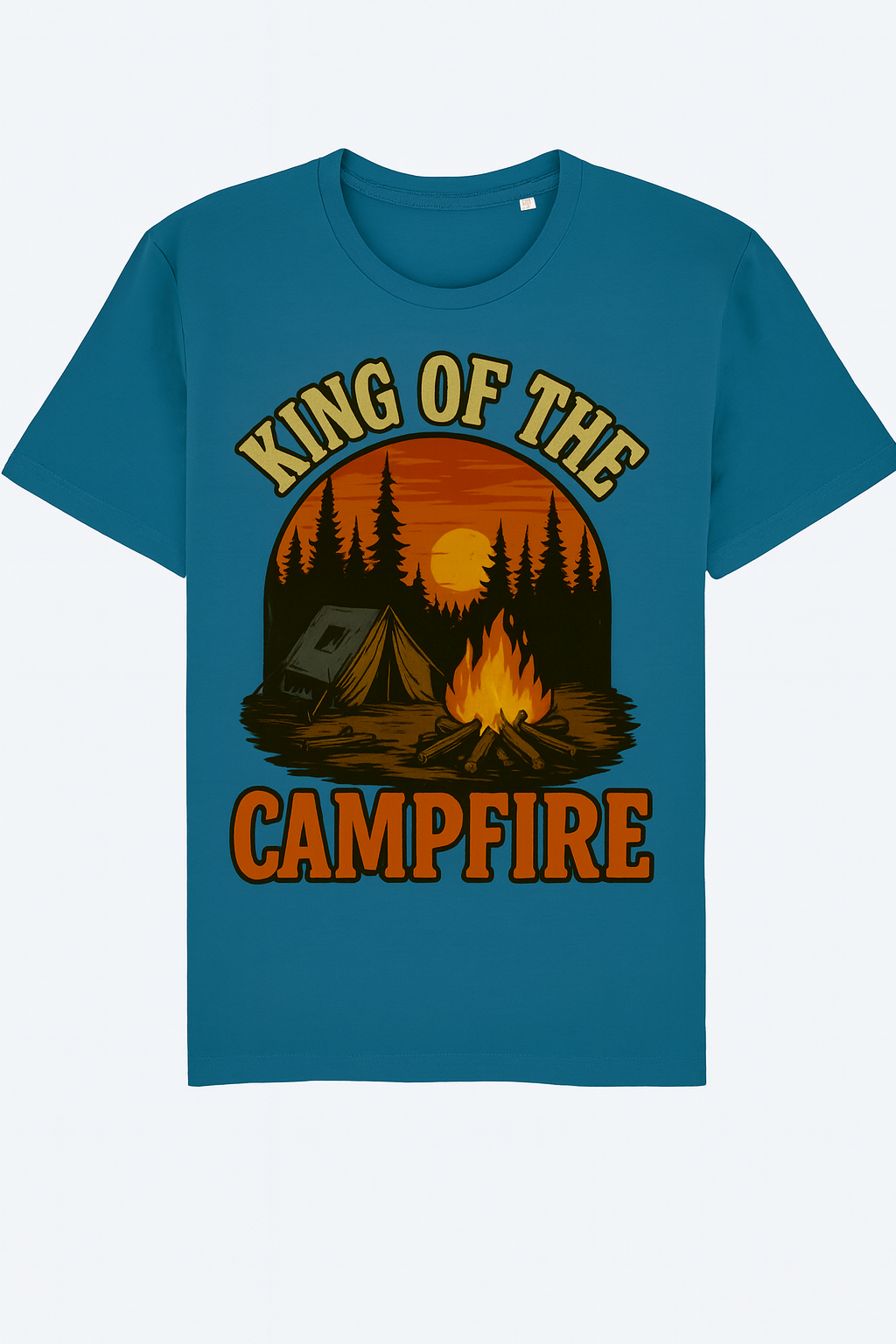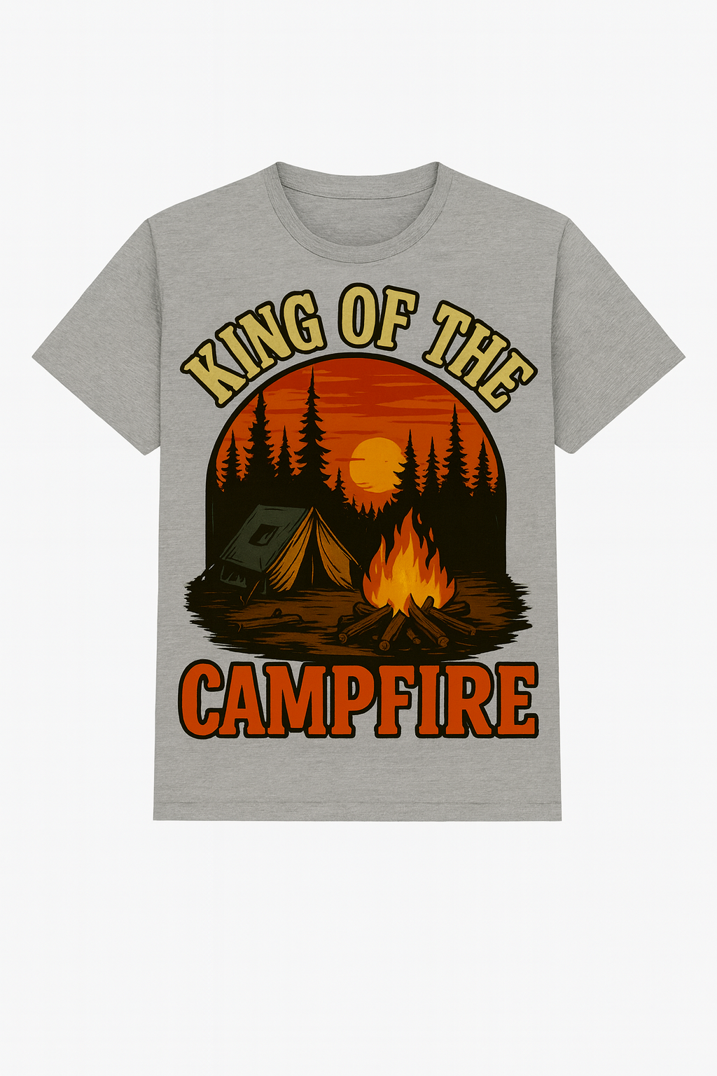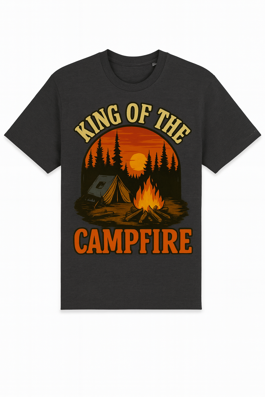 Tricoul Campfire Legends – King of the Campfire este o piesă vestimentară dedicată celor care iubesc libertatea campingului și atmosfera unică a serilor petrecute lângă foc. Designul său expresiv redă perfect spiritul aventurii: un foc de tabără aprins, un cort simplu și silueta pădurii la apus, toate încadrate de mesajul puternic King of the Campfire.