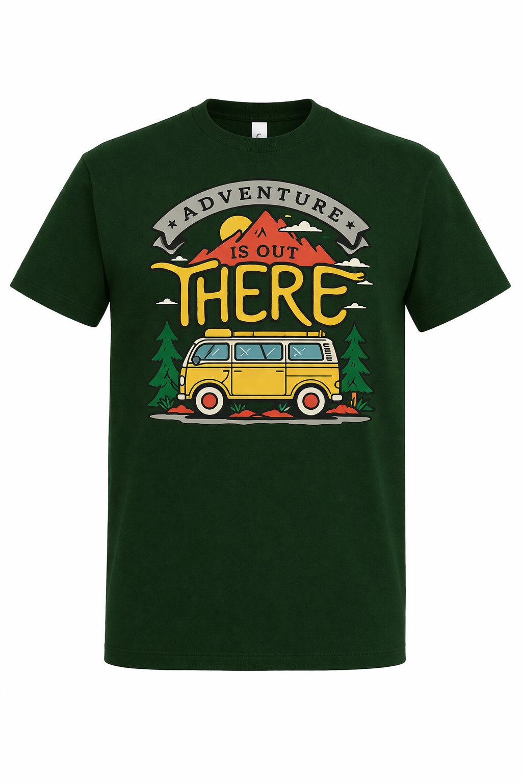 Adventure Is Here – Vanlife Escape Tee este inspirat din spiritul exploratorilor moderni — munți, drumuri nesfârșite și libertatea de a pleca oricând.