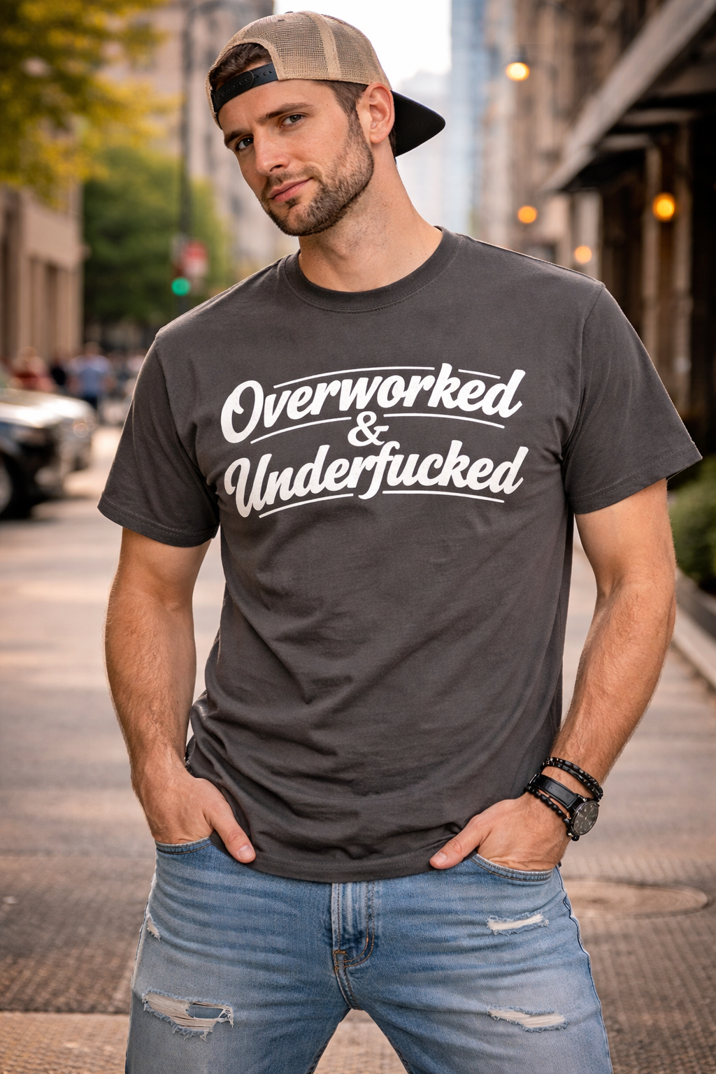 • Tricoul „Overworked & Underfucked” este creat pentru cei care iubesc mesajele directe și umorul urban