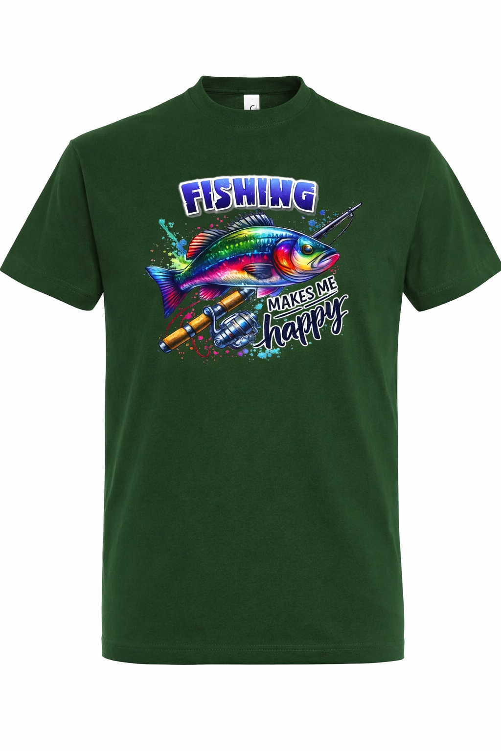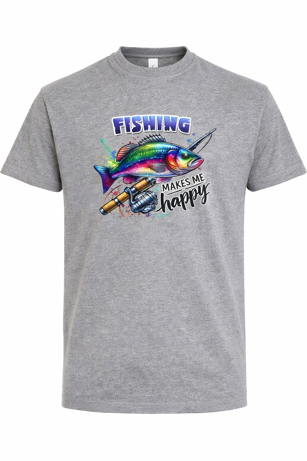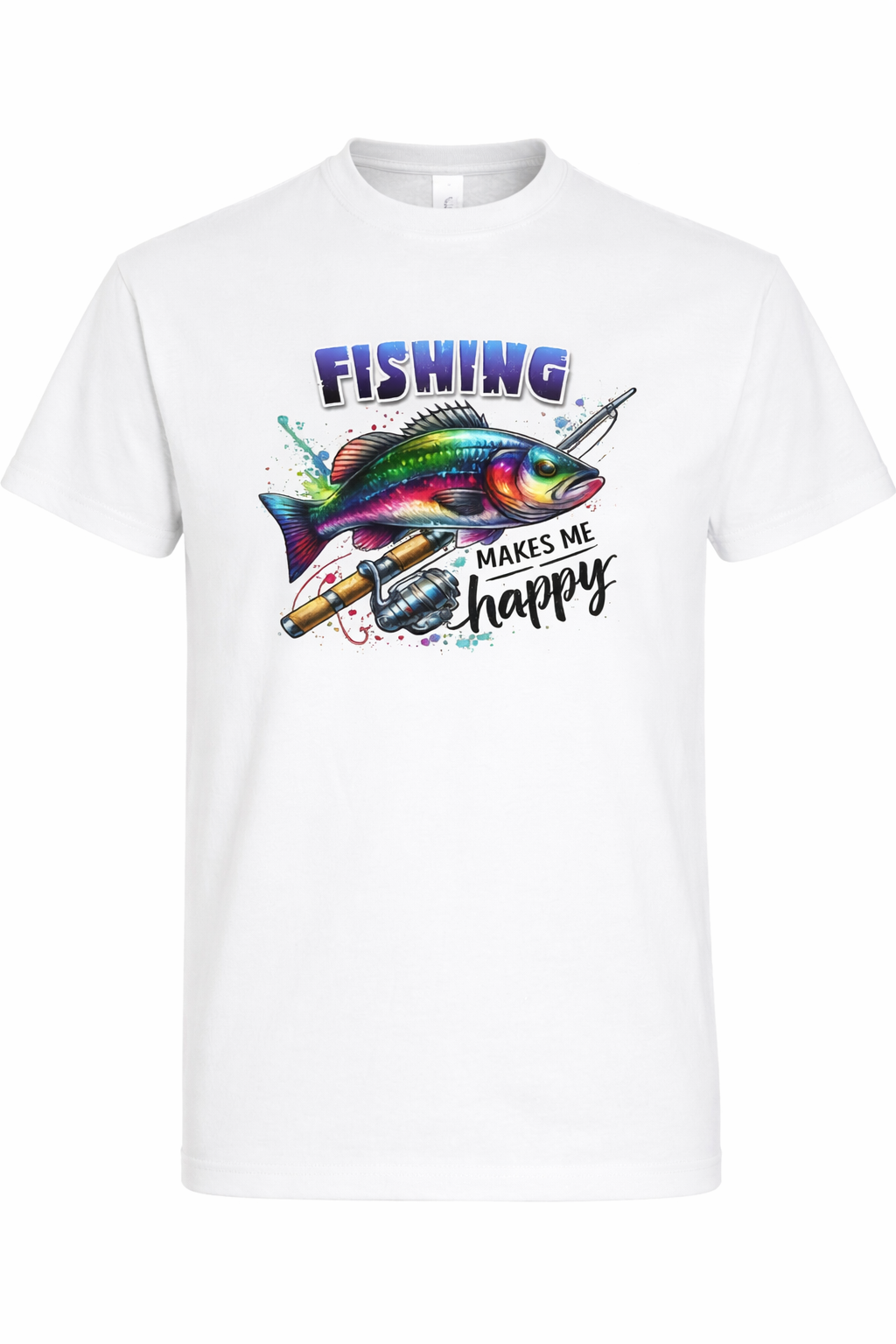 Tricoul Fishing Makes Me Happy este alegerea perfectă pentru orice pasionat de pescuit. Designul colorat cu pește și lansetă, combinat cu mesajul funny, transmite exact ce simți când ești pe malul apei.