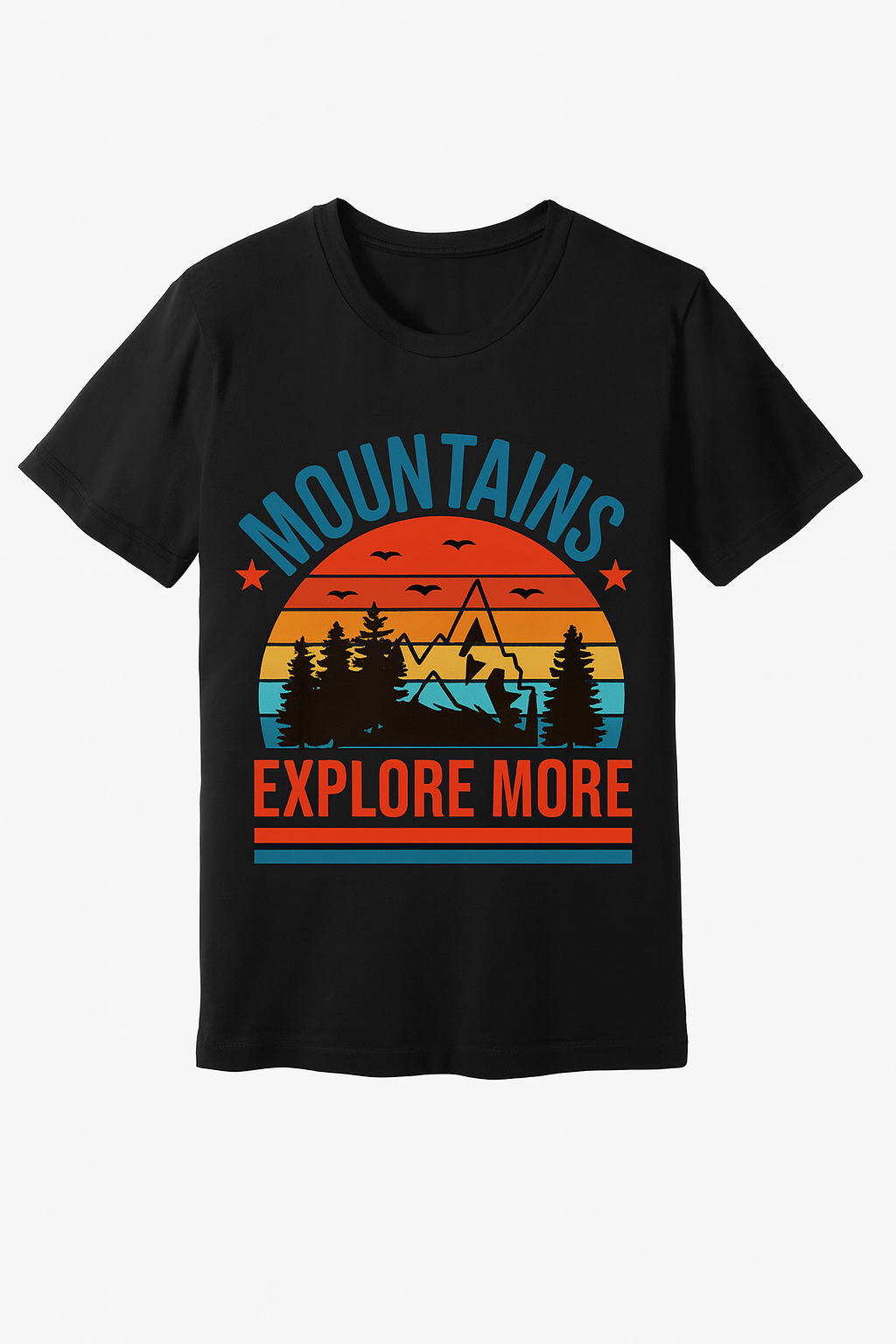 Tricoul Explore More – Mountains este conceput pentru cei care simt chemarea muntelui și a aventurii. Designul său transmite libertatea explorării și pasiunea pentru natură, fiind o piesă vestimentară statement pentru iubitorii de drumeții și călătorii. Grafica vibrantă surprinde un peisaj montan stilizat, cu brazi, munți și păsări în zbor, completată de mesajul motivațional Explore More.