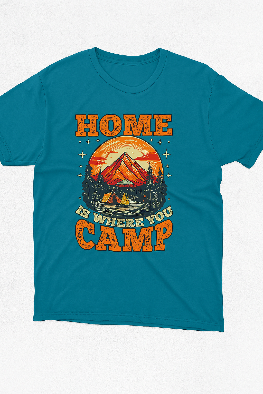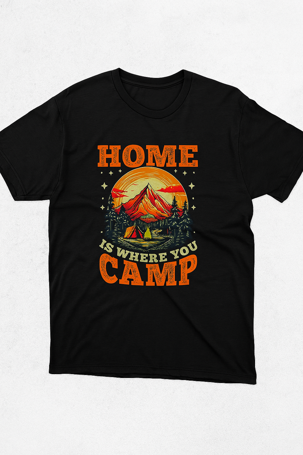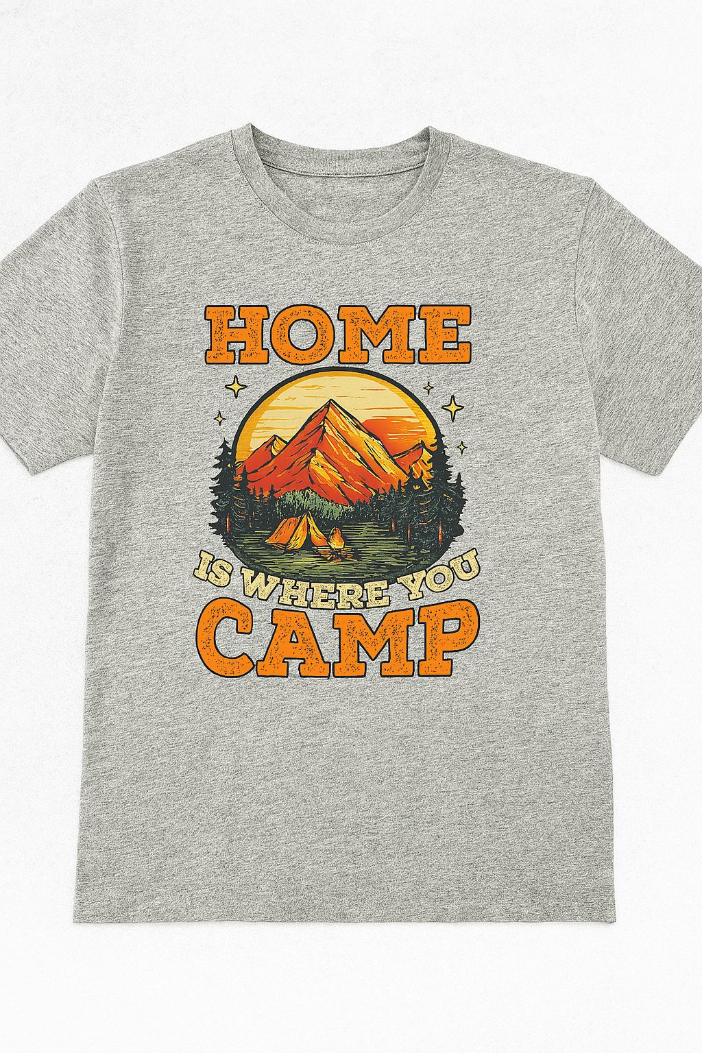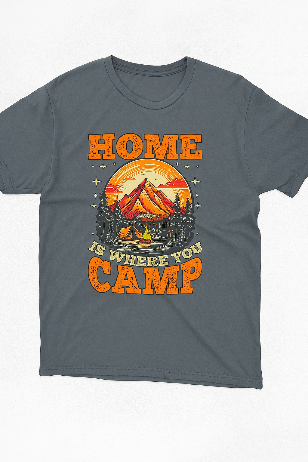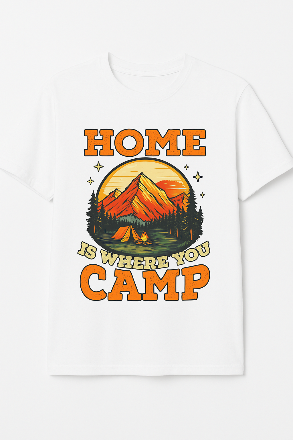 ✔️ Design cu mesaj inspirațional – „Home is where you camp”, perfect pentru iubitorii de camping